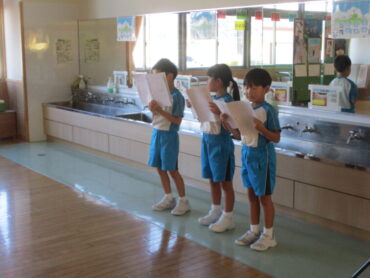2025.9.5 1年生 2年生 今日の福岡っ子 9月3日(水) 【1年生】 1年生は、学習発表会で「ねずみのすもう」の劇を行います。 配役やせりふを決めて、いよいよ練習開始です。 これから練習を重ねて、どんどん上手になっていきます。 【2年生】 2年生は、音楽科で「虫のこえ」を歌っています。 歌詞に出てくる生き物がどんなものなのかを確認した後、先生の後に続いて歌いました。 どんな鳴き声なのか、強弱を考えながら歌いました。