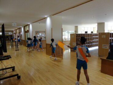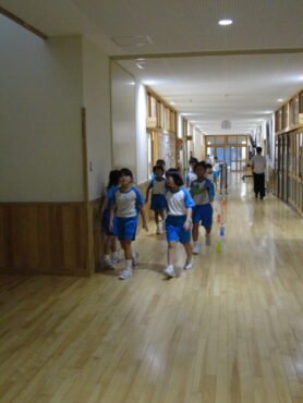 まわりに言われなくても、自然とろう下の右側をゆっくり歩く児童が多く、