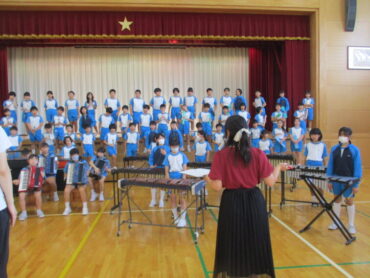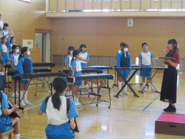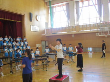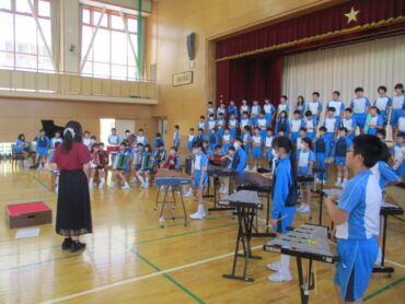 学習発表会に向けて練習している合唱と合奏の指導をしていただきました。