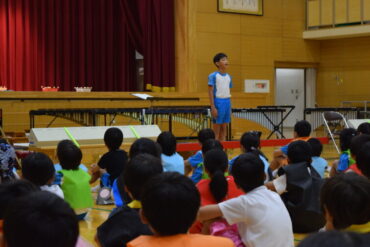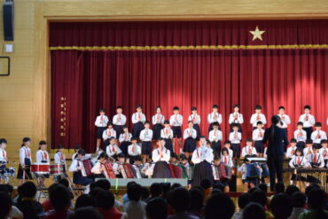 2025.10.10 1年生 2年生 5年生 学習発表会予行練習①(5、1、2年生) 10月7日に学習発表会の予行練習を行いました。 まず、児童会長が「スローガンを達成できるように頑張ろう」と全校に向けて呼びかけました。 その後は、当日と同じプログラム順で各学年が発表しました。 どの学年も練習の成果を発揮し、他学年を楽しませようと精一杯、演技や演奏を披露しました。 【5年生】 【1年生】 【2年生】
