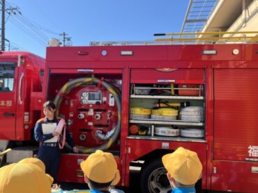 社会科でくらしを守る消防士の仕事を学ぶために、福岡消防署へ見学に行きました。