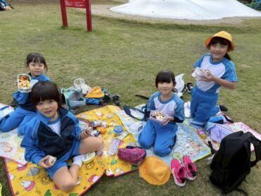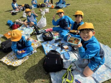 お昼には、友達と一緒に、お弁当を食べました。食べ終わった後は、遊具で思いっきり遊びました。