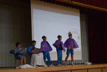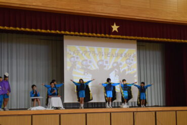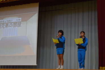 最初に保健委員会の児童が、劇を交えてメディアアンケート等の結果やメディア依存になるとどうなるかについて発表しました。