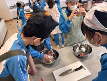 お湯を沸かす、バナナを切る、白玉を作るなど、班のメンバーと協力しながら調理実習に取り組みました。