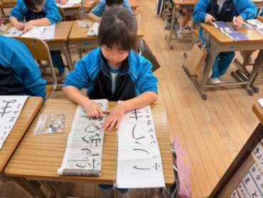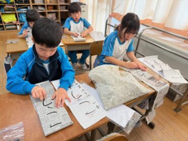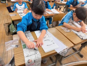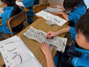 クレパスを使って、「こうま」と書きます。字の濃さや大きさ、一つ一つの字のポイントを意識しながら、真剣に書いていました。3学期の書初大会に向けて、冬休みも練習を頑張ってほしいです。