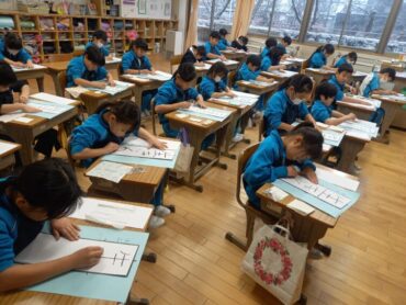 校内書初大会では、冬休みの成果を発揮できるよう、心を込めて力強く書きました。