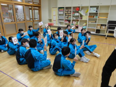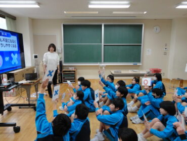 測定前に、養護教諭と一緒に「すいみんの大切さ」について○×クイズを交えながら学びました。