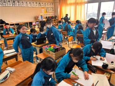 2026.2.4 NEW 5年生 5年生 卒業を祝う会に向けて 卒業を祝う会に向けて、グループに分かれて準備を進めています。 6年生に感謝の思いを届けようと考え、進行の仕方や出し物について話し合ったり、掲示物を作ったりしています。
